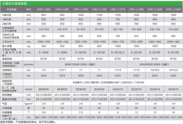 VMC-L850/L855/L1060/L1160
